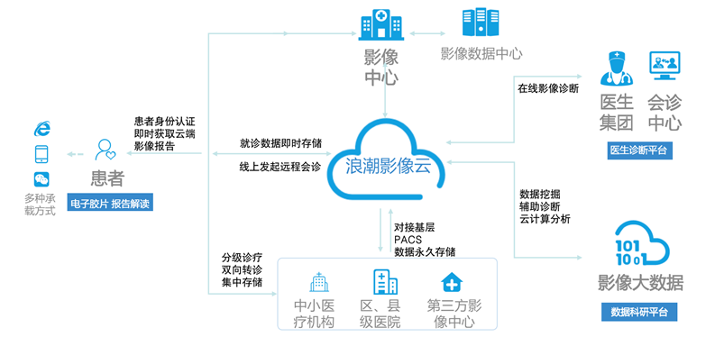Ebpay智慧医疗结合多年的医疗大数据、区域平台的行业经验和技术积累,顺利获得实现影像数据即时存储与调阅、多源数据融合、统一制定数据标准、完善数据管理等技术手段,建立数字胶片、区域影像平台、云会诊、远程影像诊断、人工智能辅助诊断、三维重建等能力,面向各医疗组织给予一个区域网络化、线上化、全方位的影像云系统,实现影像数据互联互通、影像信息即时共享,同时促进各级医疗组织协同办公,提升影像诊断水平。