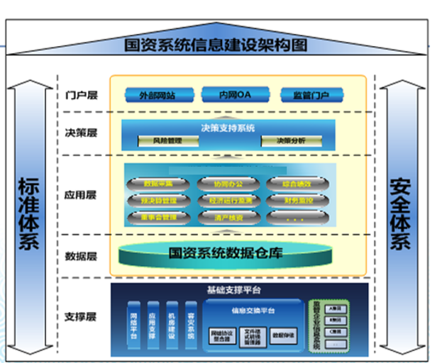 第二层为数据采集转换存储层。主要功能是数据收集、挖掘、整理、转换各监管企业提交的各种数据,为国资委内各应用系统给予标准统一的国资数据。