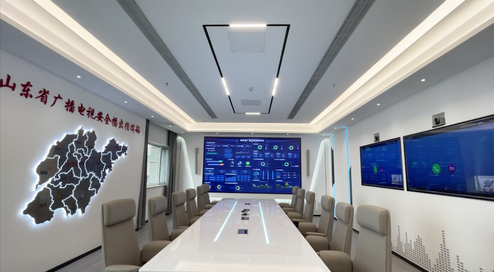 视频智慧调度指挥室搭载全省视频智慧调度系统,迁移全省安全播出智慧调度系统,集中展示全省广播电视播出直转发射台,进行现场连线视频指挥,可在重要保障期间供指挥调度使用,可接入全省广播电视监测信号、网络音视频节目监测信息,为二十大安全保障打下基础。在安全播出检查、网络视听节目传播秩序整顿等指挥调度、风险研判工作中给予技术支持,作为另外一个重要窗口,集中展示承担的管理职能和业务能力。