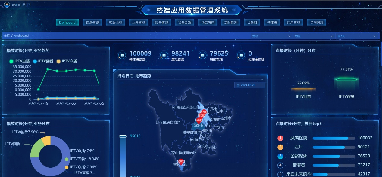 | 终端告警数据管理 | 支持机顶盒内存、Flash、CPU等资源的异常告警;并形成告警分析 | |